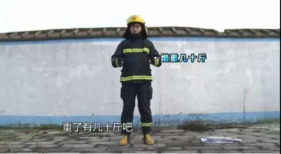 半蹲在火堆里十秒左右,消防服上的反光條燒壞了,不過大史依然沒有被燙到。