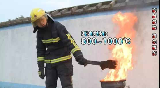用汽油再做一次實驗,發(fā)現(xiàn)防火手套被點燃了,但是只要離開明火,也會迅速熄滅,符合國家標(biāo)準(zhǔn),消防服續(xù)燃時間≤2秒。