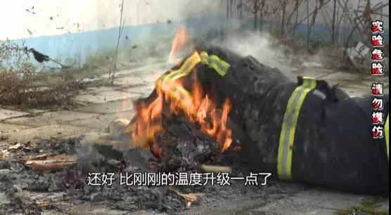 實驗結(jié)論,消防服短時間內(nèi)雖然有一定的阻燃效果,但只要長時間接觸明火,哪怕只是木材這樣尋常物質(zhì),燃燒溫度在500℃以上就會被點燃。