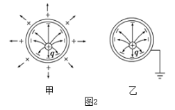 如圖2甲導(dǎo)體殼沒有接地時,處于內(nèi)部電場中,達(dá)到靜電平衡,導(dǎo)體殼內(nèi)外表面出現(xiàn)等量異種電荷,殼內(nèi)外表面之間場強(qiáng)處處為零,殼外場強(qiáng)不為零.導(dǎo)體殼接地后,如圖2乙所示,導(dǎo)體殼外的正電荷被大地負(fù)電荷中和,正電荷出現(xiàn)在地球的另一端無窮遠(yuǎn)處,導(dǎo)體殼內(nèi)外表面之間及導(dǎo)體外部場強(qiáng)處處為零,導(dǎo)體外部空間不受內(nèi)部電場影響.
