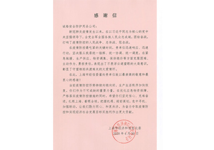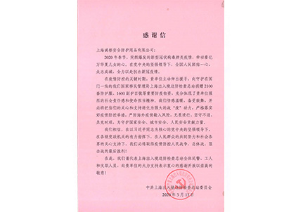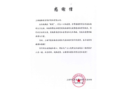 感謝信 上海市慈善基金會(huì)浦東代表機(jī)構(gòu)