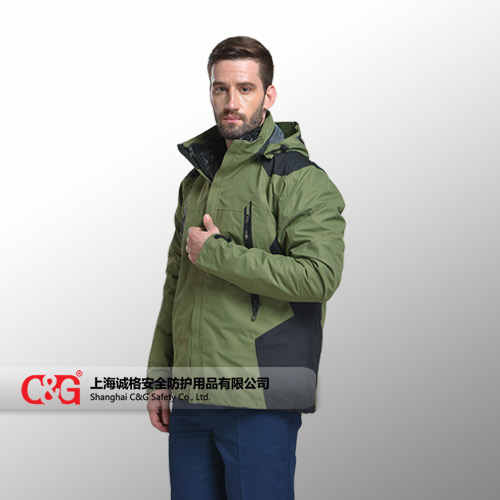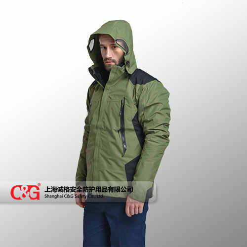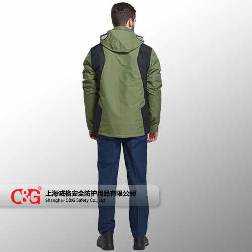 沖鋒衣 CG-CFF806采用三層壓膠防水透氣面料制作,防水指數(shù)5000以上,可防中大雨;接縫全部采用壓膠防水拉鏈;內(nèi)膽采用高效保暖羽絨棉,可單獨穿著;風(fēng)帽采用獨特透視窗設(shè)計,大大增加可視性。