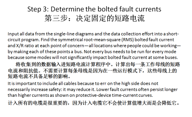 弧閃危害分析應(yīng)該是短路電流計(jì)算和繼電保護(hù)協(xié)調(diào)的一項(xiàng)后續(xù)工作。使用短路電流計(jì)算的結(jié)果可以決定短路電流的瞬時(shí)值,設(shè)備額定遮斷能力和短路酎受電流值。 通過(guò)繼電保護(hù)協(xié)調(diào)的結(jié)果可以得出切斷過(guò)負(fù)載電流和短路電流的時(shí)間。短路電流計(jì) 算和繼電保護(hù)協(xié)調(diào)為進(jìn)弧閃危害分析提供了必要的數(shù)據(jù)。通過(guò)弧閃危害分析,可以得出弧閃保護(hù)的安全邊界長(zhǎng)度和在操作距離上的電弧能墩。